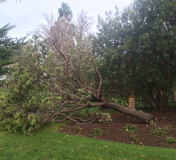 The second reason trees fall is culture. There is a reason native plants grow where they do. It’s because they have been acclimated to that specific area through centuries of evolution. Planting trees that are not suited for their new climate or the space in your yard can affect the success of the tree greatly. Take for example Coast Redwood Trees. People think they are drought tolerant because they are native to California so they must be accustom to drought. Aren’t we in a drought? These trees are native to the coast line in northern California. They get constant moisture from the ocean and have a deep layer of acidic sandy soil that has built up for years. That is their ideal growing climate. People love them but don’t think about what they really need to be successful. They need Santa Cruz. They don’t like heavy clay soil, they need acidic soil, and most importantly they need water. That is why all the redwood trees throughout the county turn brown. It is also not from lack of sufficient water to grow the tree it is drought specifically. When the moisture content in the soil decreases the boron levels in the soil increase. Redwoods are sensitive to boron. This leads to failure by causing a tree to grow in an unhealthy environment.